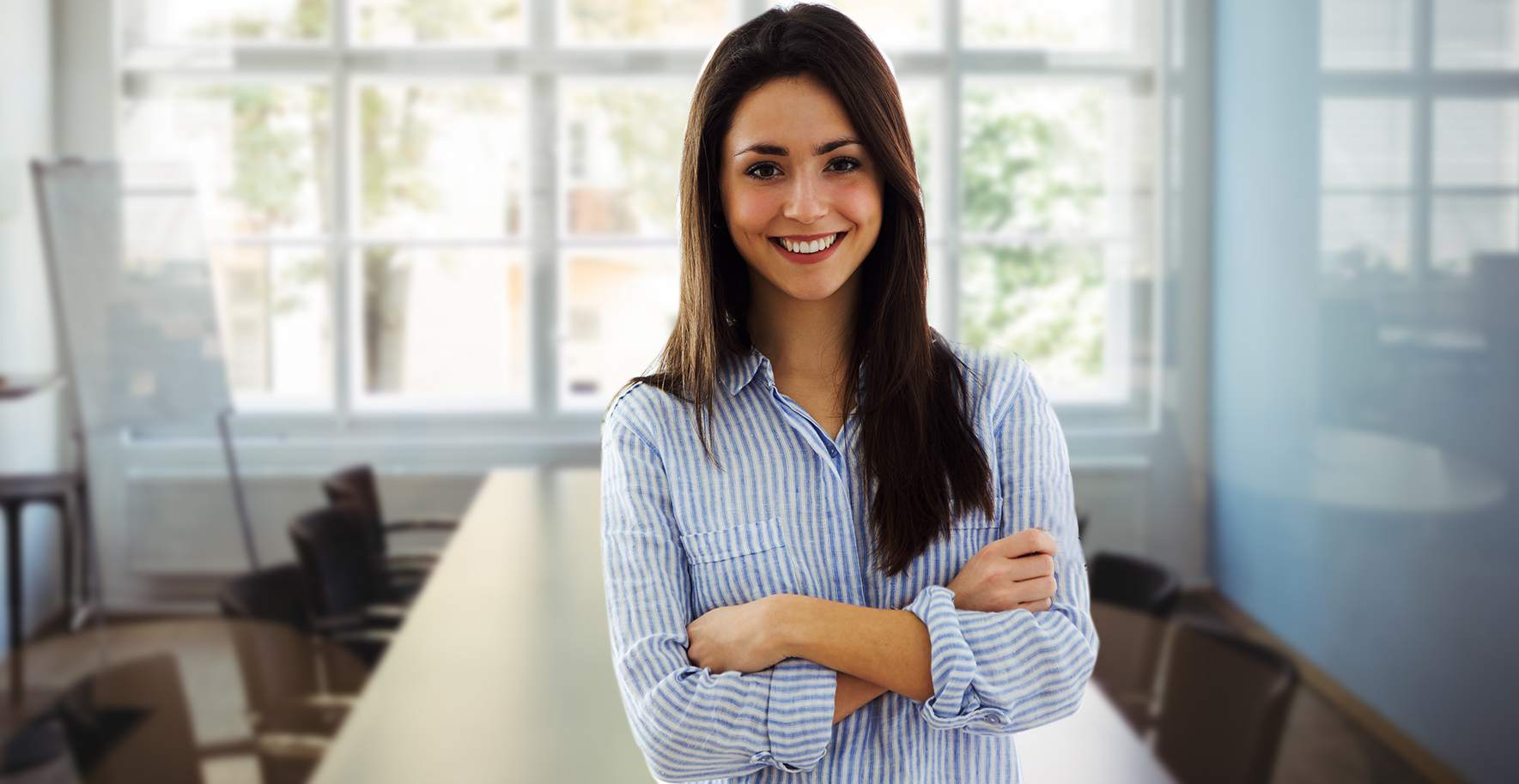Beautiful smiling businesswoman portrait at workplace